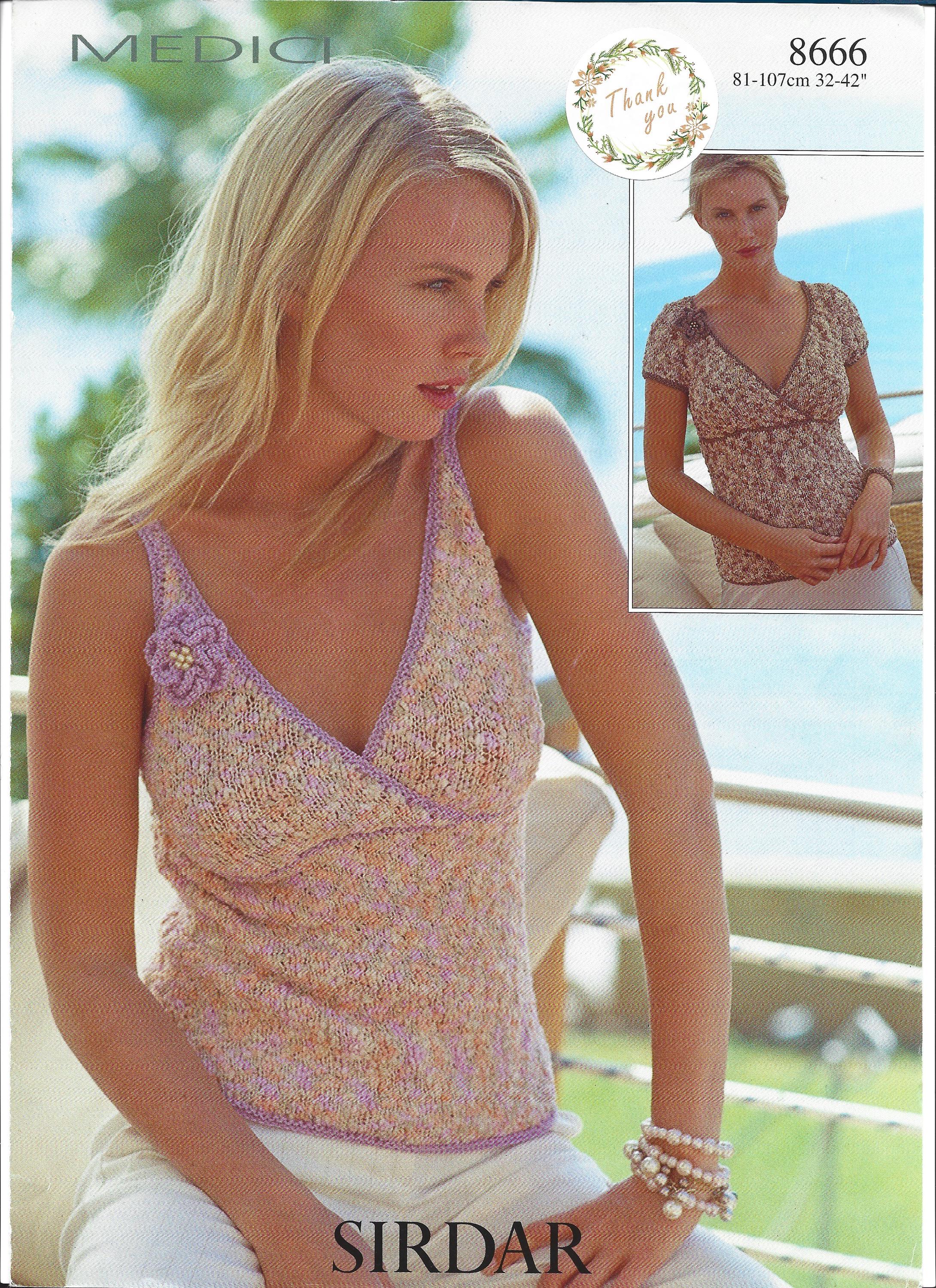 073 Medici / Silky Look DK Knitted Vest Top Knitting Pattern PDF Download (81-107cm 32-42") Sleeves or No Sleeves x 2 SIRDAR: 8666