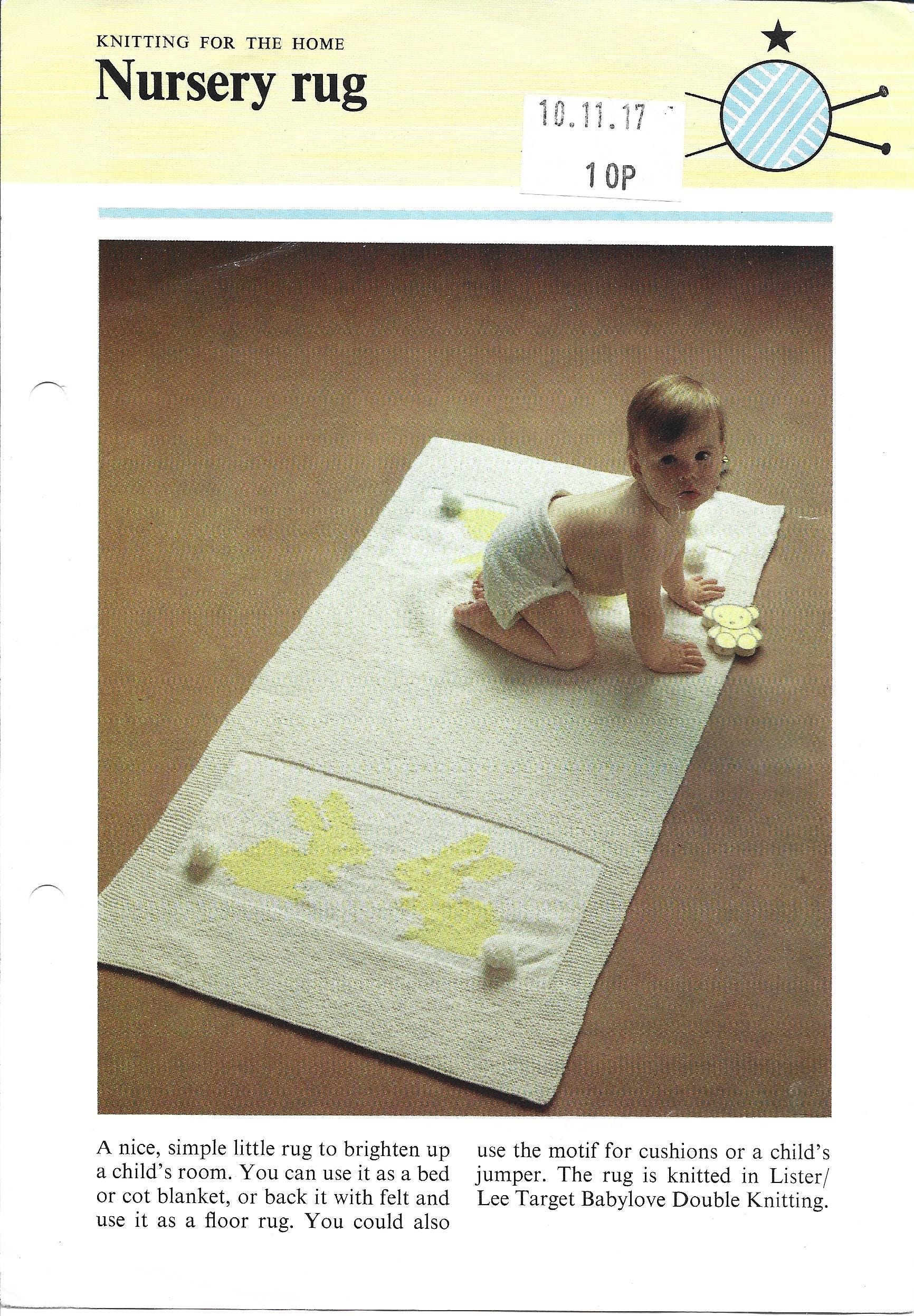 050 Vintage Knitting Pattern Baby Nursery Rug Blanket Throw | Spring Bunny Rabbit Novelty Motif | Homeware Digital PDF Download 80's Home