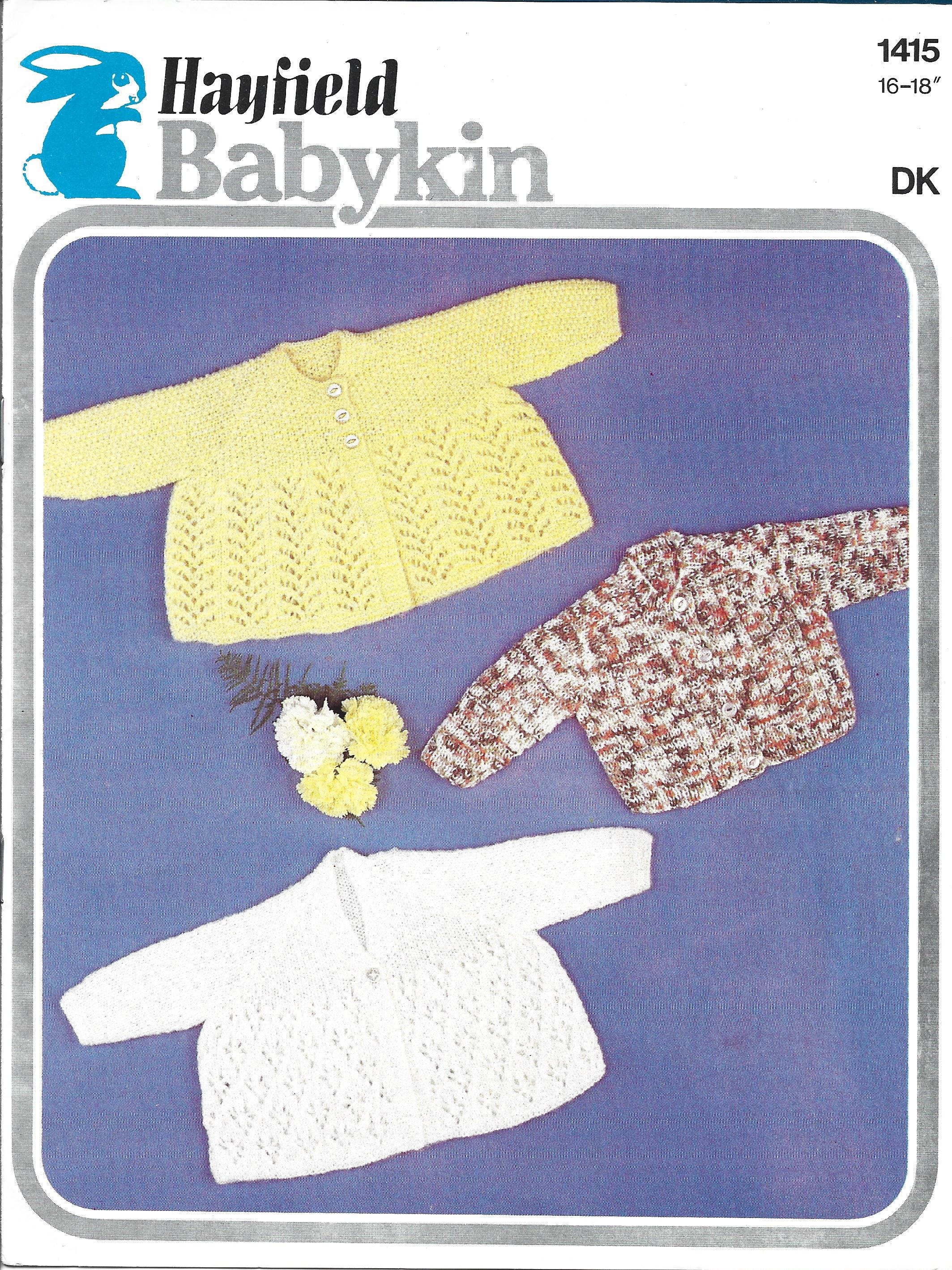 092 Hayfield Babykin 3 x Vintage Patterned Cardigans Matinee Coats | Retro Baby | Vintage Knitting Pattern PDF (2 sizes) 80's Gift