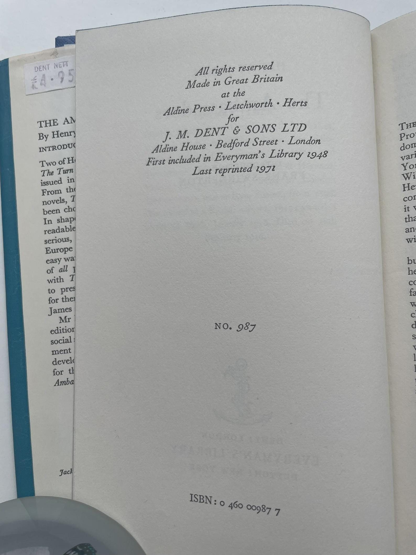 The Ambassadors - Henry James | Everyman's Library | Dent Dutton Books | 1971 | Vintage Antiquarian Book Hardback
