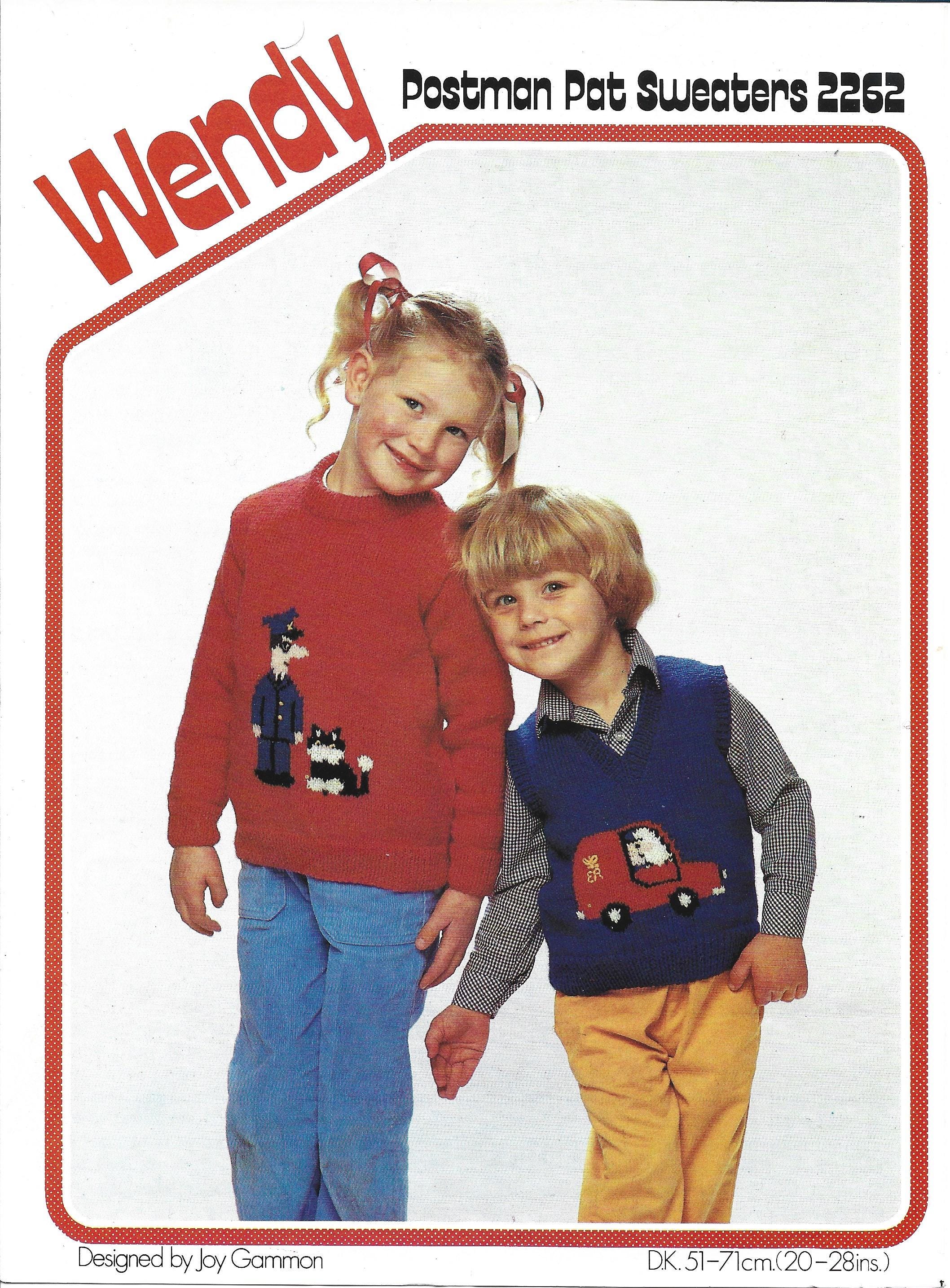 095 | Vintage Postman Pat Novelty Kids Knitted Sweaters Unisex Wendy Pattern 2262 PDF Digital Download Jumper 80's Retro Cartoons Tank Top