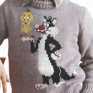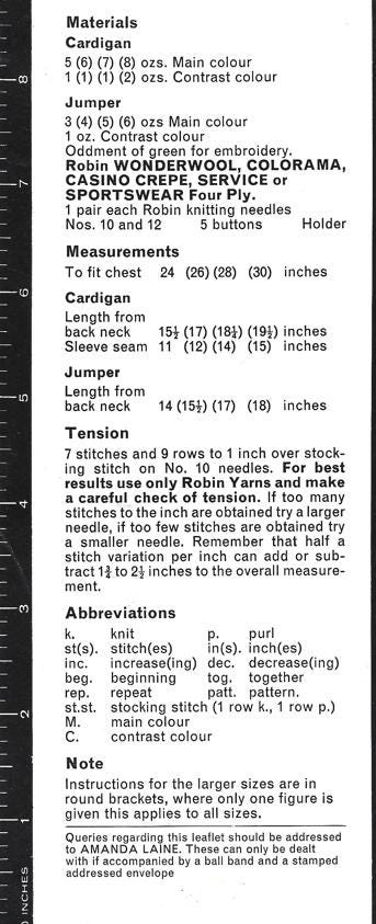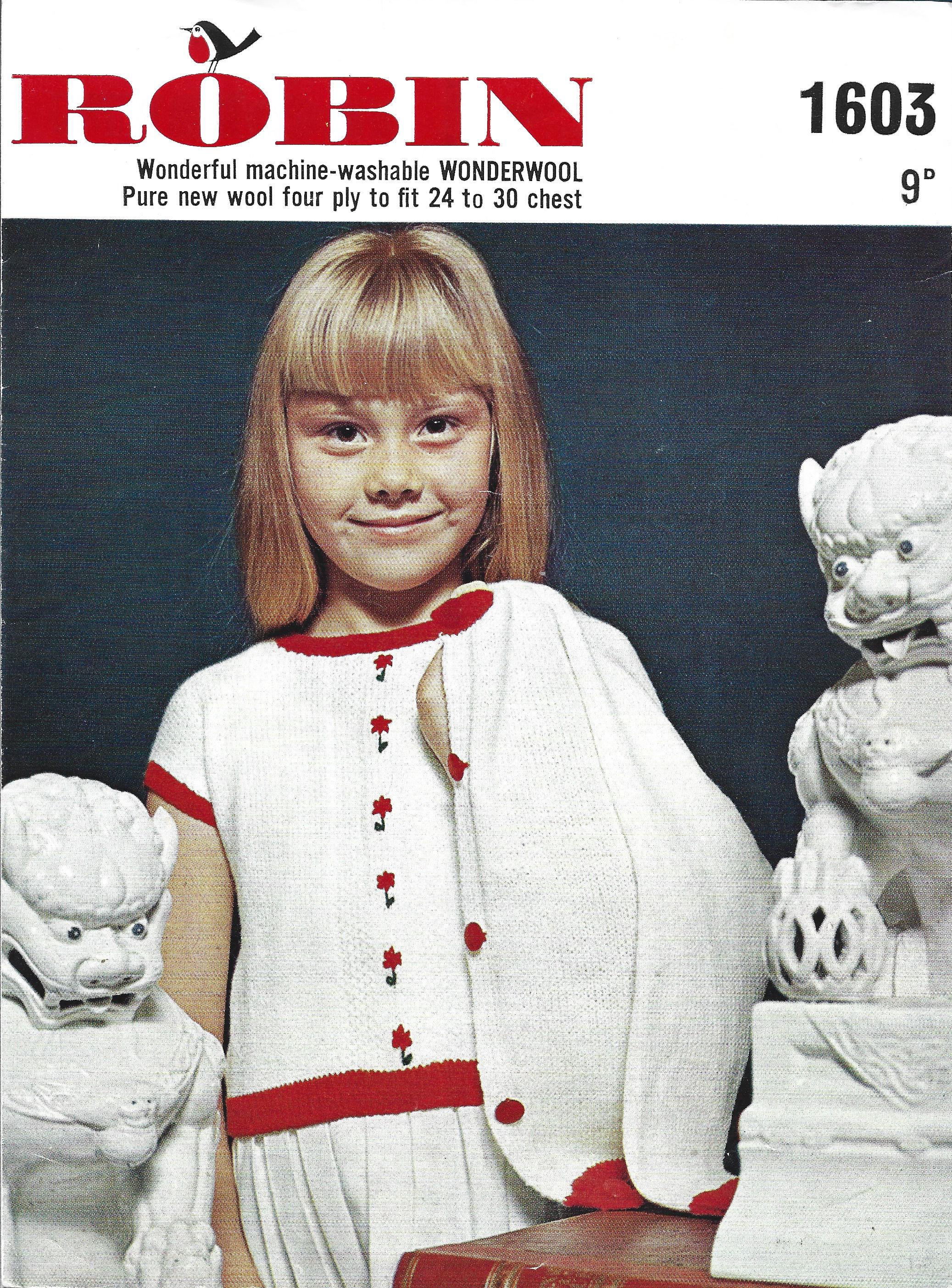 101 Vintage Child's Twinset Cardigan & Jumper Floral Detail | Robin 1603 | Vintage Knitting Pattern PDF Download (4 sizes) 70's