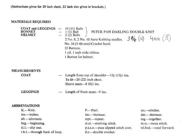 Knitting pattern to make a cardigan/coat, a bonnet and matching leggings to fit chest 20-22"