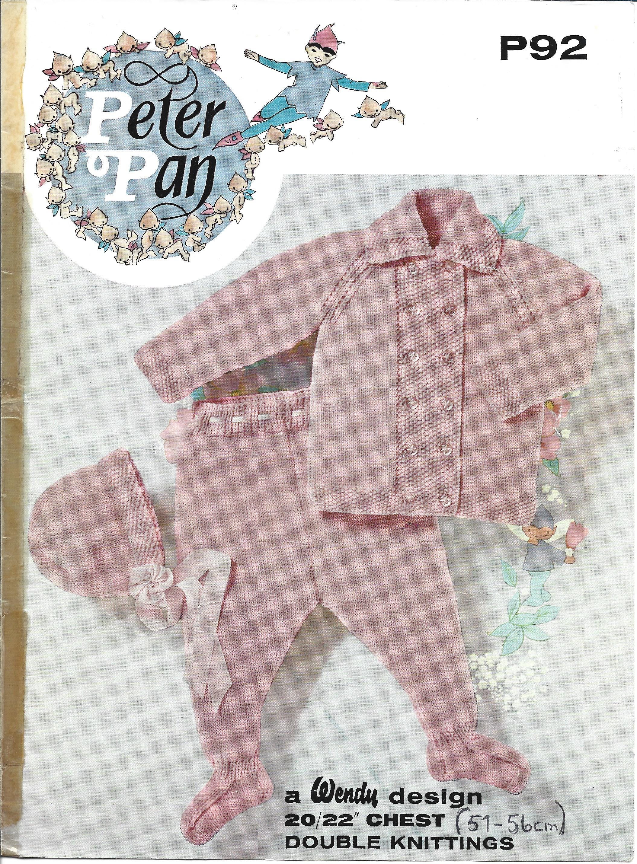 102 Peter Pan Double Knit Pram Set / Baby Child's Knitted Cardigan Coat Bonnet & Leggings Set | Vintage Knitting Pattern PDF 20-22" chest