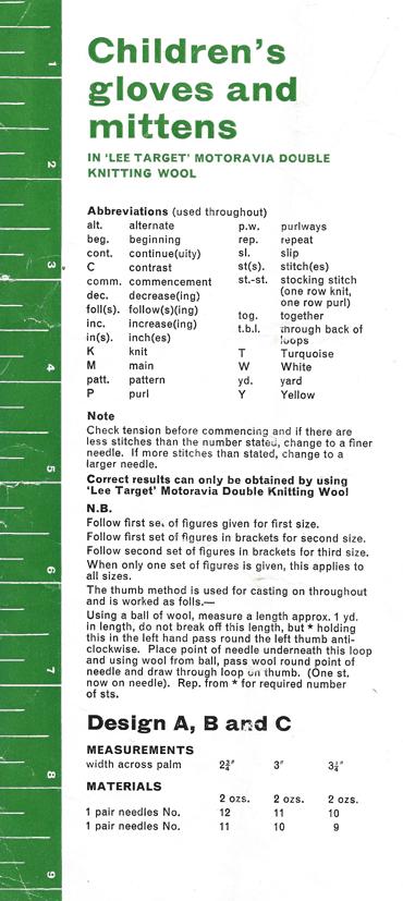 Knitting patterns to make Several different kinds of Mittens and Gloves for Children in 3 sizes and various patterns
