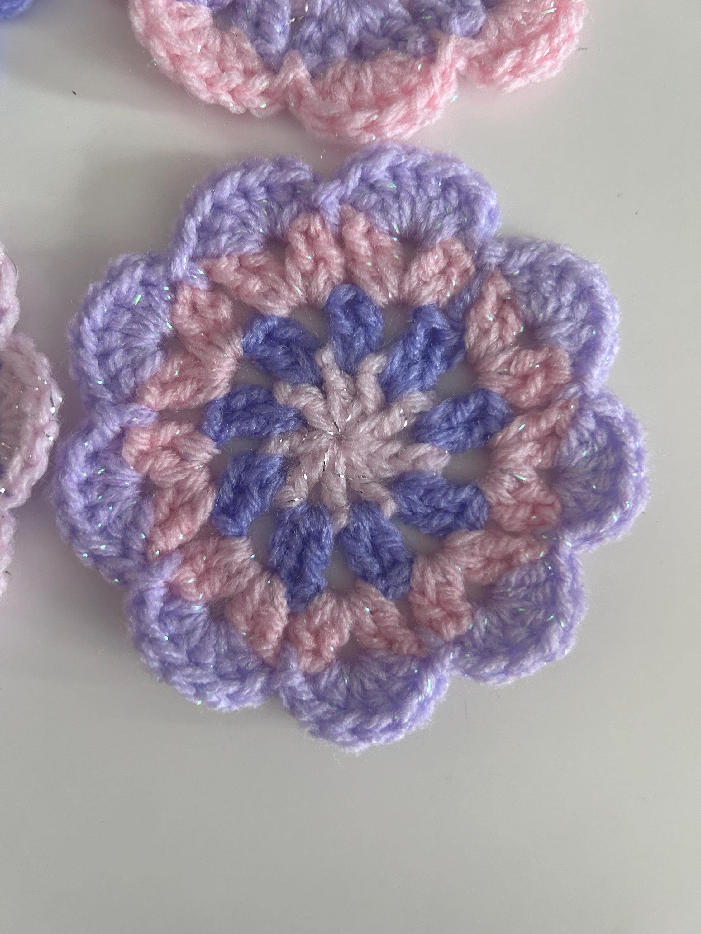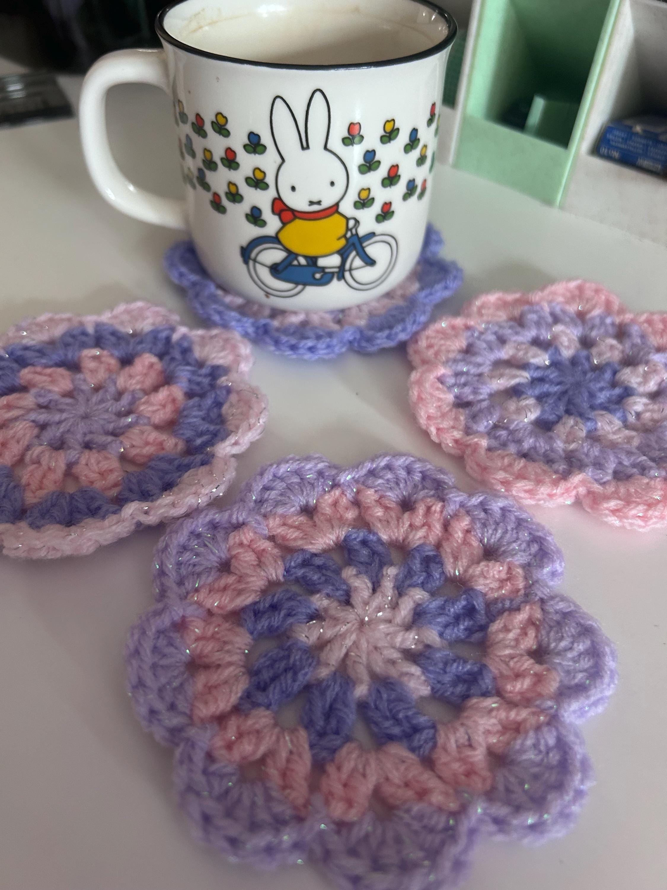 Retro Pastel Crochet Coasters | Vintage Home | *Glitter Princess* | Handmade Gifts | 40's 50's Home Mid Century Mandala Flower | Set of 4