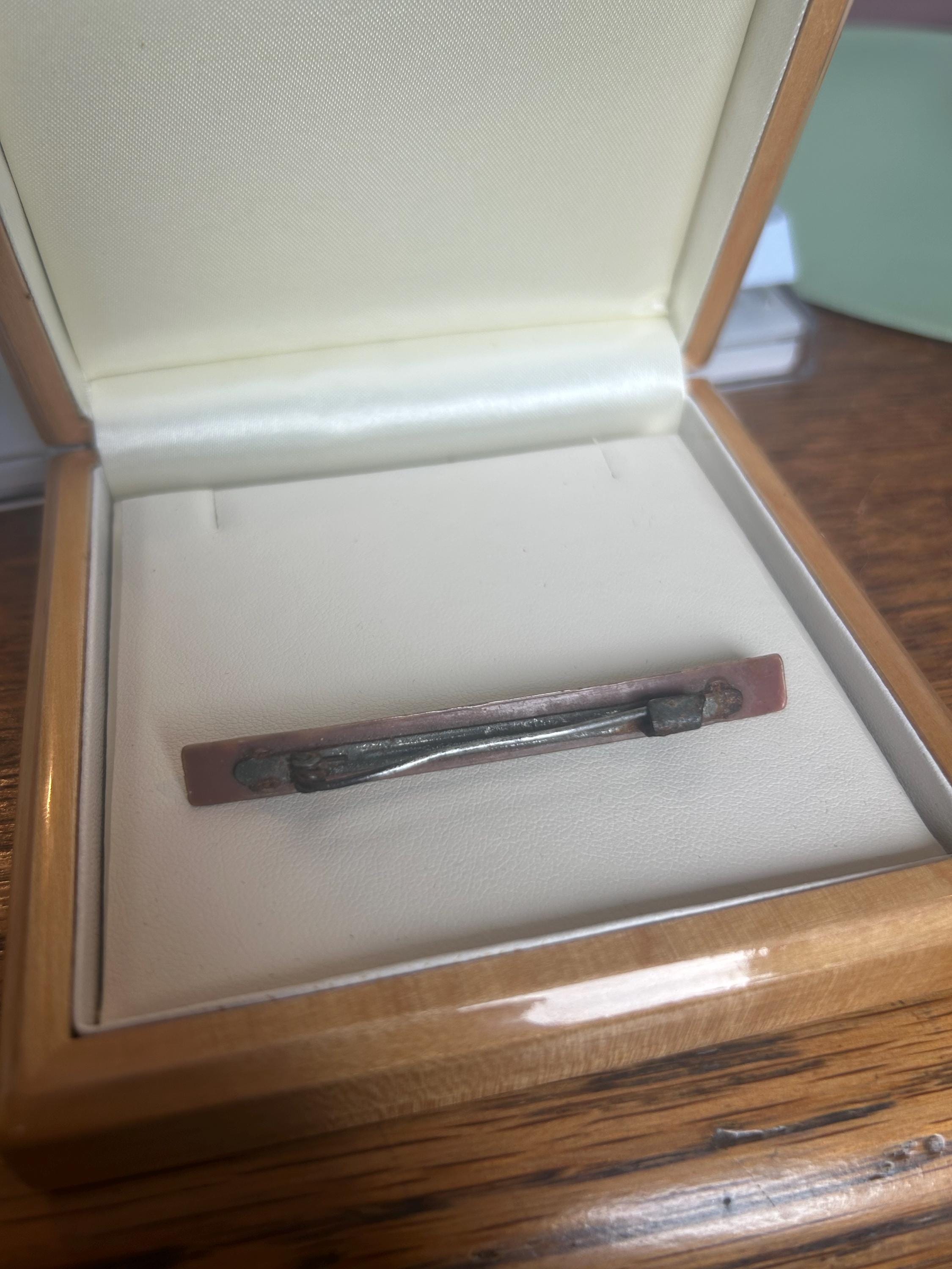 Vintage Bakelite Bar Brooch | 1940s–1950s Mid-Century Bakelite Pin | Faux Wood Grain Metallic Effect | Retro Jewellery